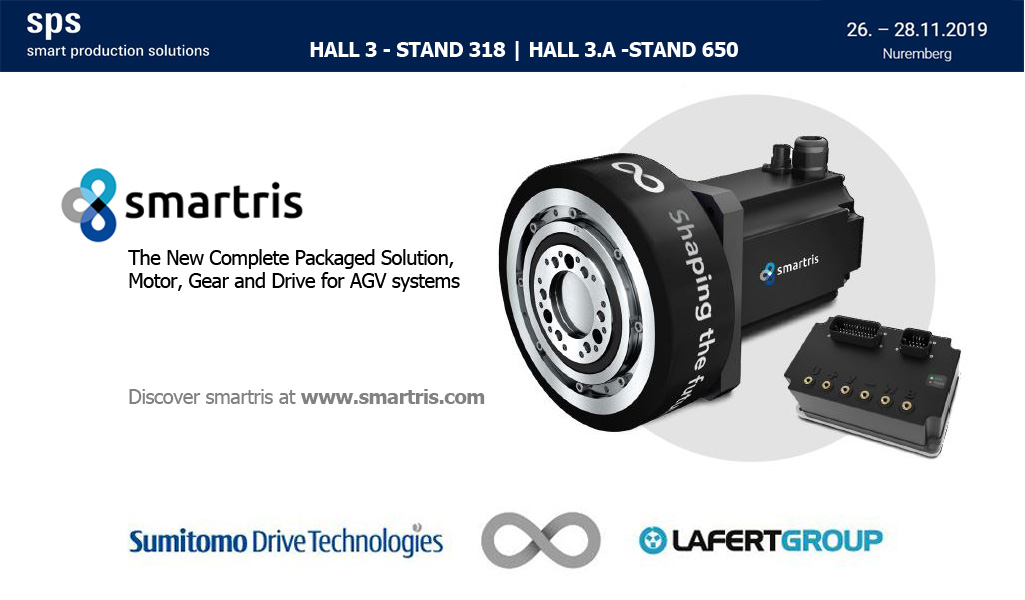 “Durante la SPS, – prosegue Stefano Dessanti – Lafert esporrà delle novità assolute frutto delle sinergie con Sumitomo, come ad esempio Smartris, il Nuovo Pacchetto Integrato per applicazioni AGV, inclusivo di servomotore, riduttore e azionamento, che rappresenta il primo prodotto nato dalla collaborazione tra Lafert e Sumitomo”. Inoltre, saranno esposte altre novità: l'estesa gamma di Servomotori Brushless che ora include la nuova serie di Motori Compatti, da 0.18 Nm a 46 Nm, con dimensioni ridotte per alte prestazioni. La nuova generazione di Motori Sincroni a Magneti Permanenti con Azionamento Integrato, completamente riprogettato, sempre IE4/IE5 ma con un nuovo esclusivo design, ideale per applicazioni HVAC.