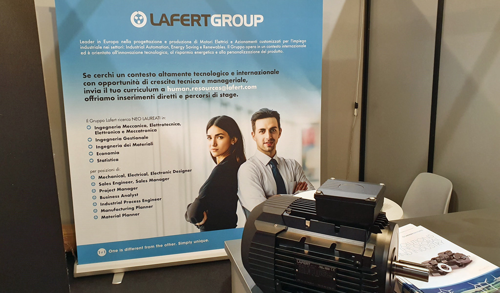 Il Gruppo Lafert, parte di Sumitomo Heavy Industries Ltd. guarda al futuro ed è costantemente interessata a promuovere nuovi inserimenti per supportare l’importante sviluppo del business. Lafert ha partecipato all’evento “Università Aperta – Career Day IES” promosso dall’Università degli Studi di Padova nel mese di novembre, per poter incontrare giovani neo-laureati motivati ad inserirsi in un contesto tecnologicamente innovativo e internazionale, con un buon background universitario, predisposizione al team-working, dotati di determinazione e desiderosi di mettersi in gioco.