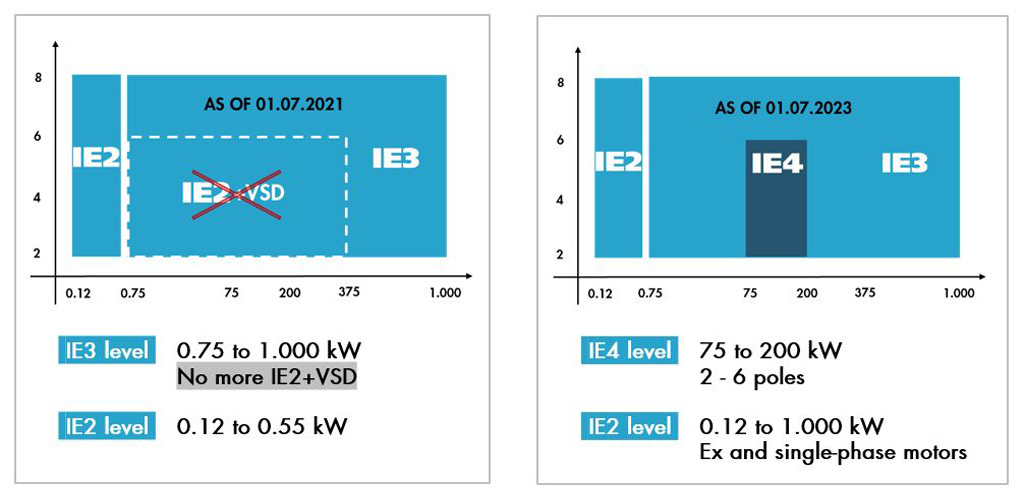 Pubblicato nella Gazzetta Ufficiale il 25 Ottobre 2019, il nuovo Regolamento entrerà in vigore in due step, il primo step a decorrere dal 1° Luglio 2021 e il secondo dal 1° Luglio 2023. Entrambi gli step stabiliscono requisiti di rendimento più stringenti nell'efficienza dei motori, estendendo l'ambito di applicazione del regolamento a nuove gamme di motori ed escludendo l'opzione efficienza minima IE2 con alimentazione da inverter (VSD).