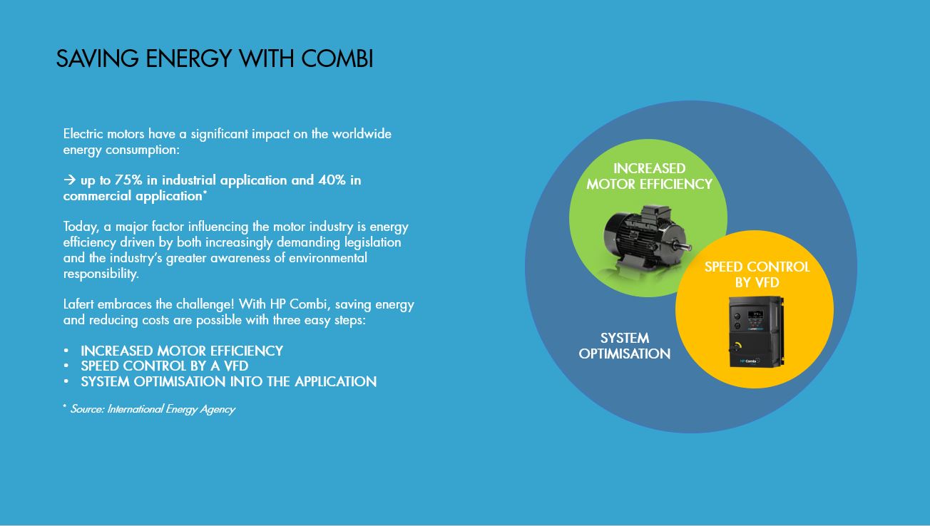 HP Combi è due in uno, un matrimonio innovativo tra motore sincrono a magneti permanenti e azionamento a frequenza variabile. Il pacchetto Combi unisce l’altissima efficienza IE5 dei nostri motori sincroni a magneti permanenti al nostro azionamento a frequenza variabile (VFD) raggiungendo i massimi standard di efficienza energetica. La gamma di motori sfrutta la tecnologia dei servomotori brushless e dei motori asincroni per generare l’alta densità di coppia che permette la riduzione di taglia e peso fino al 50%.
